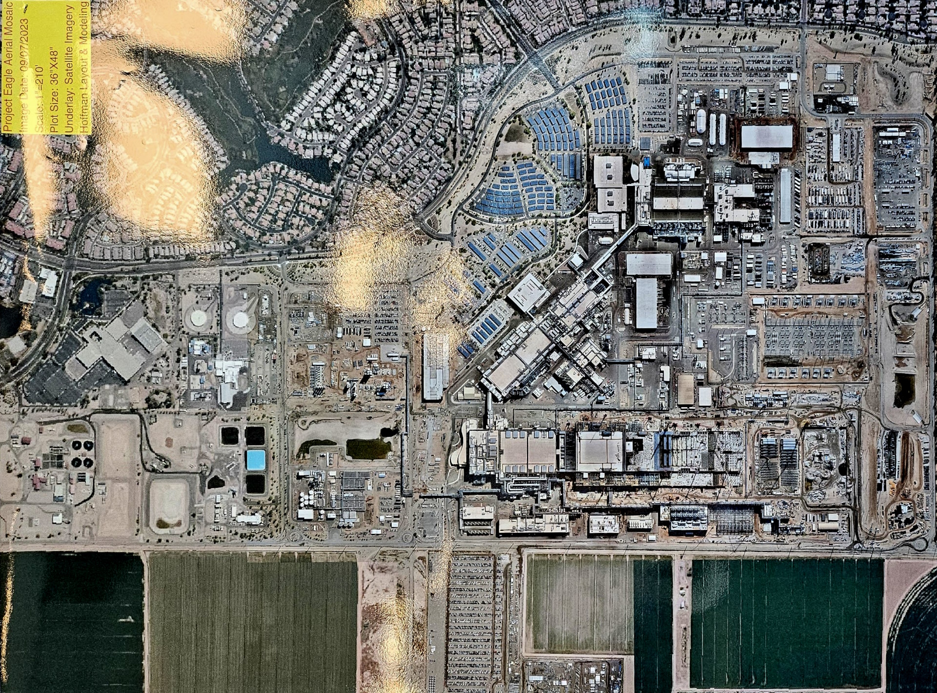 Quando se ouve falar “fábrica de microprocessadores” vem à mente algo grande, sofisticado, usando tecnologia de ponta. Imaginou? Não, você não imaginou, é algo surpreendentemente mais impressionante. Pra começar, no caso de Ocotillo, em Chandler no Arizona não se trata de uma fábrica e sim de um Campus. Ou seja, em um espaço bastante grande, imenso, há diversas fábricas já em operação e outras em construção, duas neste momento. A foto abaixo, uma visão aérea da região dá apenas uma vaga ideia do que o complexo é grande. Grosso modo um terreno de uma 1.5×1.5 Km (praticamente uma milha quadrada).