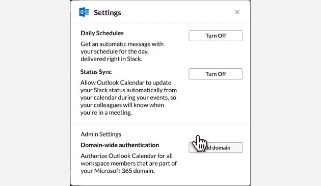 Você precisará de privilégios de administrador para sua conta do Office 365 ou G Suite para permitir o acesso do Slack às agendas dos usuários ou precisará pedir ao administrador do escritório para permitir o acesso do Slack no G Suite ou Outlook.