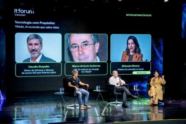 Cláudio Stopatto, diretor de Software e Alianças da Lenovo ISG para América Latina, e Marco Antonio Gutierrez, CIO do Instituto do Coração (Incor), da Faculdade de Medicina da USP, também mostraram como a tecnologia pode mudar vidas. Durante um dos painéis do evento, ambos trouxeram uma parceria realizada entre a Lenovo e o Incor, da para desenvolver um dispositivo vestível com IA capaz de detectar arritmias cardíacas com alto grau de precisão.