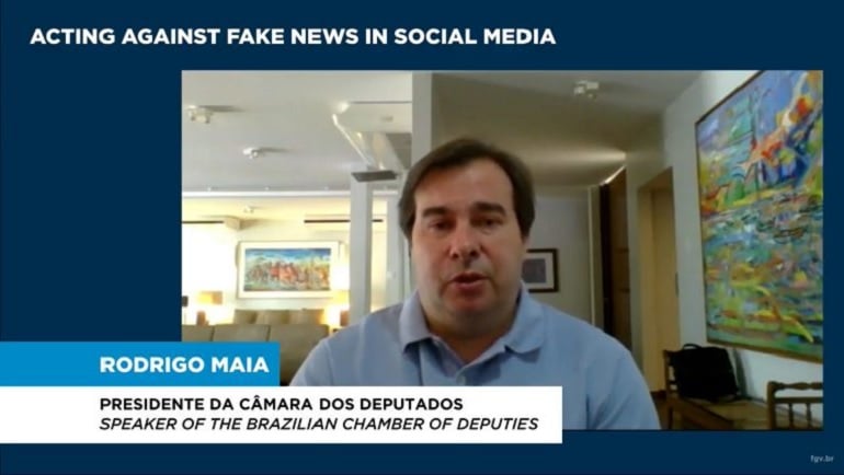 Convidado para uma live promovida pela Fundação Getúlio Vargas e pela Embaixada da Alemanha, o presidente da Câmara dos Deputados Rodrigo Maia (DEM – RJ) falou sobre o Projeto de Lei 2.630/2020, que propõe a criação de regras mais rígidas parar o combate de desinformação por meio de notícias falsas (mais conhecidas como fake news), cujo processo de votação deve ser concluído ainda neste ano.