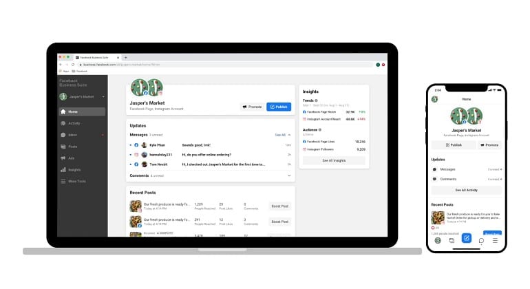 De acordo com o Facebook, este novo espaço permite o agendamento e a postagem em ambas plataformas ao mesmo tempo, além de gerenciar e receber mensagens, notificações e alertas em um só lugar. As pequenas empresas também poderão ver facilmente os posts e campanhas que estão funcionando e, com os insights do Facebook e Instagram, saber o que está ganhando a atenção dos clientes.