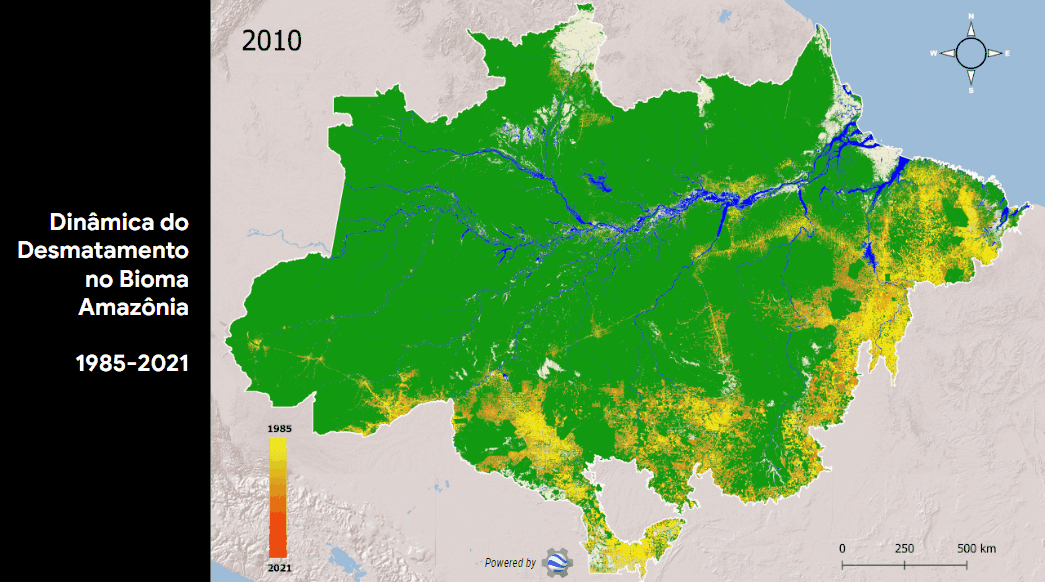 Timelapse do Google mostra evolução do desmatamento na Amazônia de 1984 até 2022